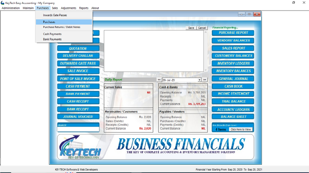 Introducing our powerful and versatile Business Management Software, designed to cater to the diverse needs of Traders, Service Providers, Wholesalers, Retailers, Distributors, and Small Manufacturing Concerns. With a robust foundation in Visual Basic 6, our software provides a feature-rich and customizable platform for optimizing your business processes.